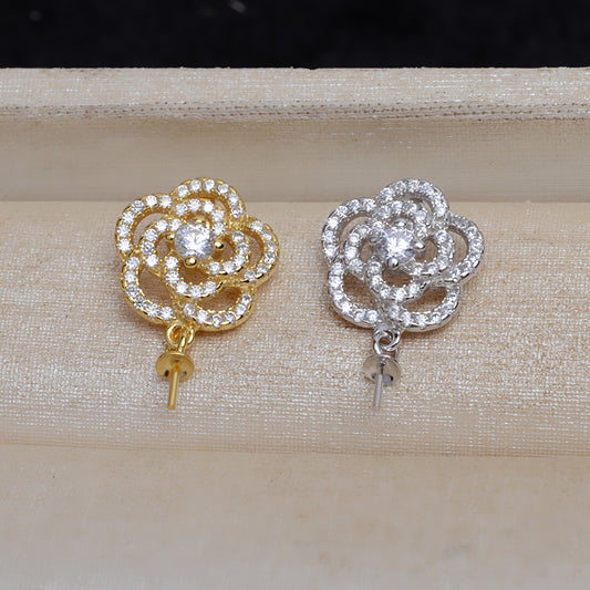 Real Silver Drop CZ Pearl Earring Setting-Feliz Pearl