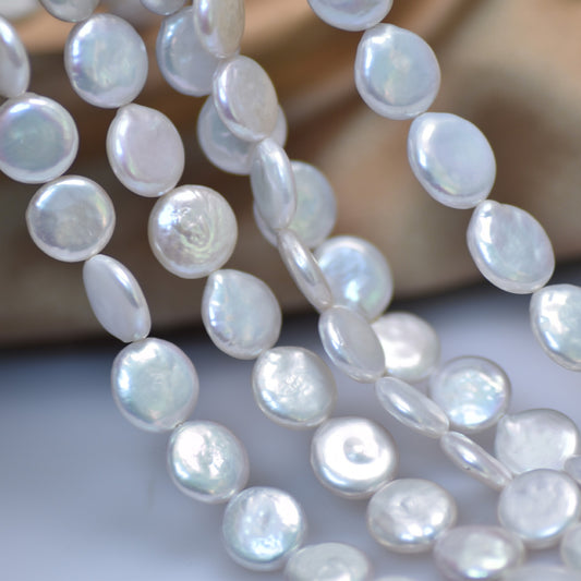 Authentic 10-11mm Coin Shape Freshwater Pearl Strands
