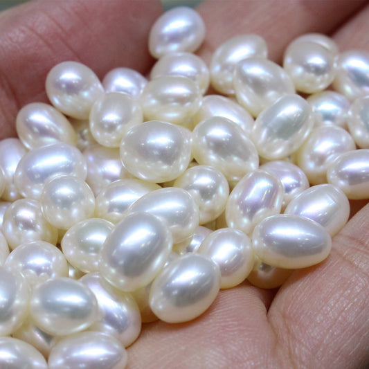 Wholesale Freshwater Loose Pearls-8.5-9mm Half Drilled Rice Pearls