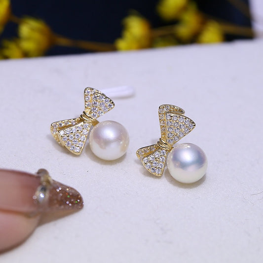 Fashion CZ Luxury Bow Knot Pearl Earring Settings-Feliz Pearl