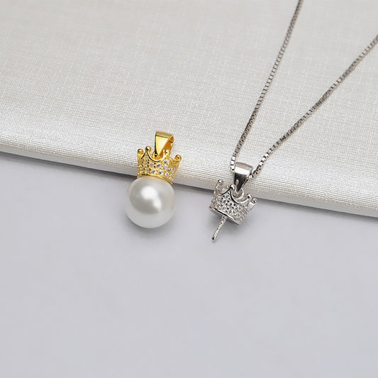 Elegant S925 Silver Crown Design Pearl Pendant Mounting