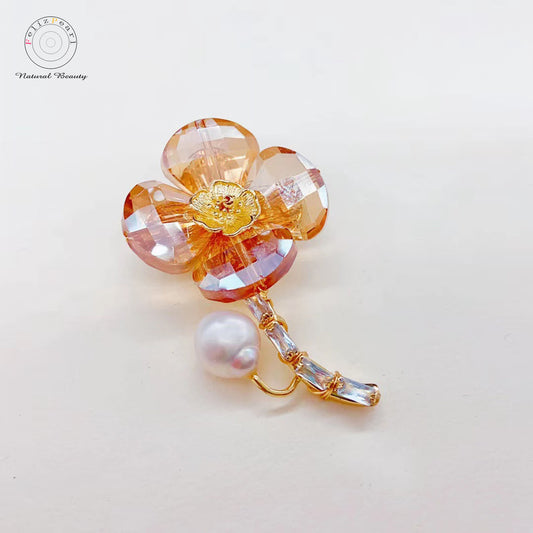 Crystal Flower. Daily Women Pearl Brooch