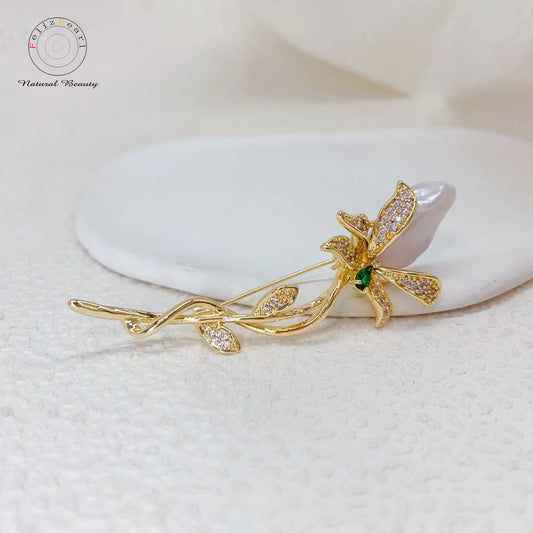 Wholesale Tulip Baroque Pearl Copper Brooch