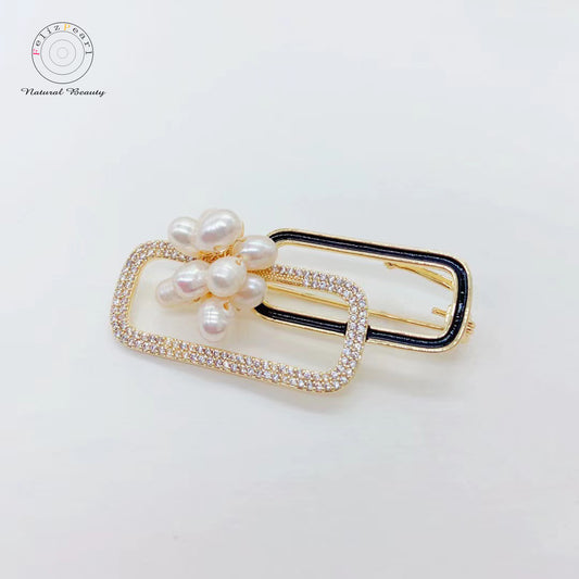Galaxy Dream. Cubic Zirconia Paper Clip Pearl Brooch