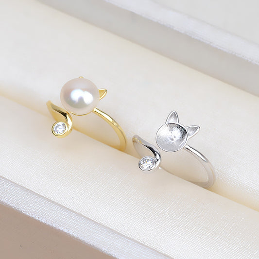S925 Sterling Silver Lovely Cat Pearl Ring Setting Wholesale