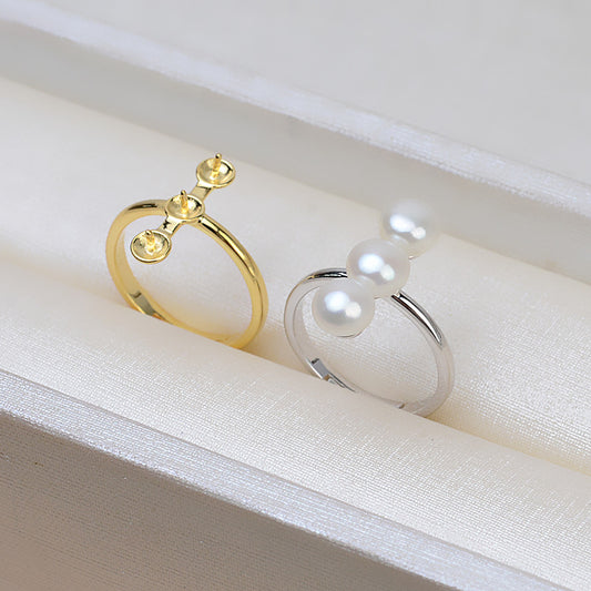 S925 Sterling Silver Triple Pearls Balance Beam Pearl Ring Mounting