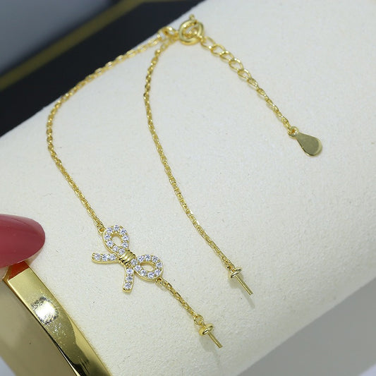 Cubic Zirconia Bow Tie Pearl Bracelet Settings