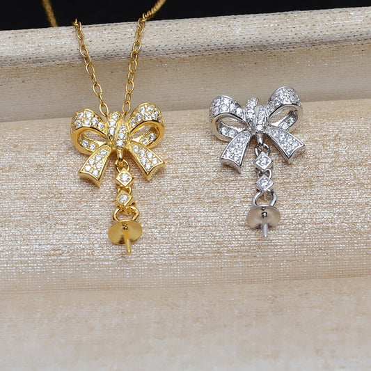 Luxury S925 Silver Bow Tie Pearl Pendant Setting