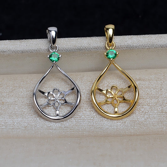 Green CZ S925 Sterling Silver Pearl Pendant Setting