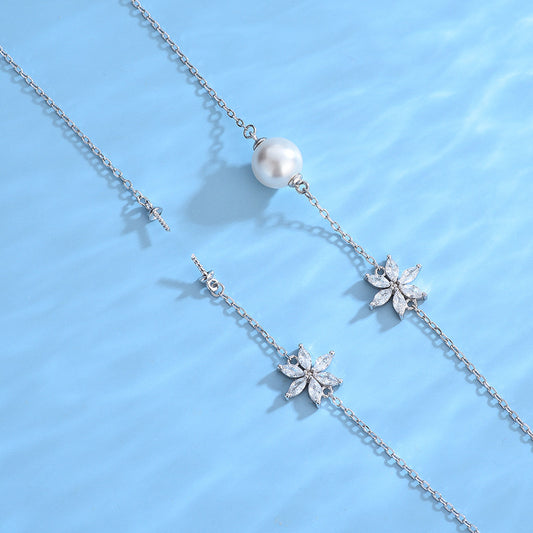 Snow Flake Pearl Bracelet Setting- S925 Silver Jewelry Setting