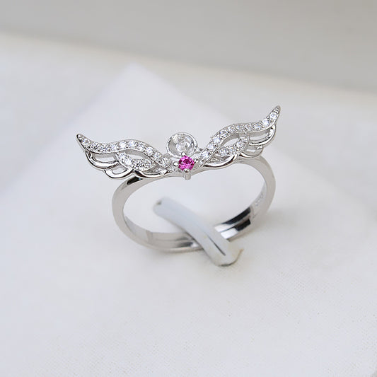S925 Sterling Silver Angel Wing Pearl Ring Mounting for Jewelry Diy