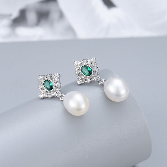 Elegant Green Cubic Zirconia Pearl Earring Setting-Feliz Pearl
