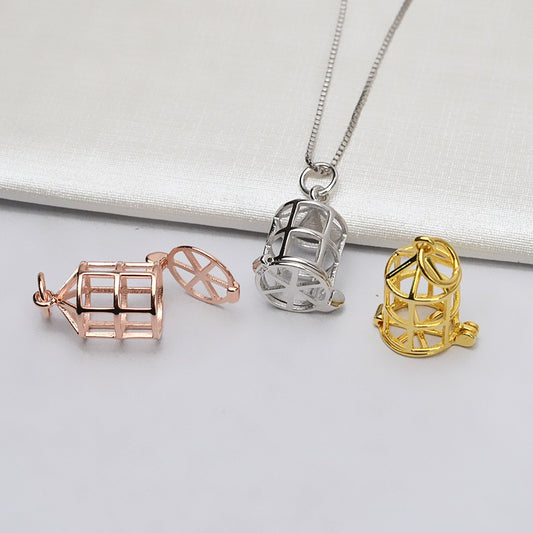S925 Sterling Silver Birdcage Pearl Cage Pendant