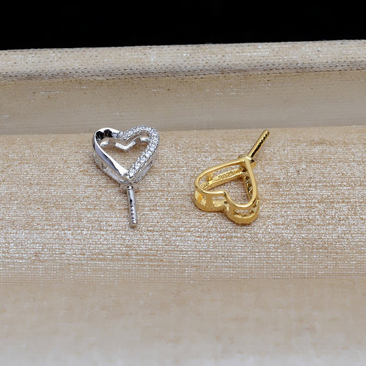 S925 Silver Cubic Zirconia Heart Design Pearl Pendant Mounting