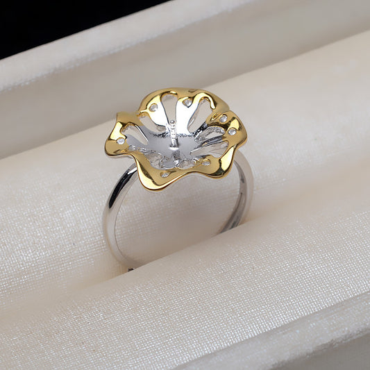 New Design S925 Sterling Silver Lotus Flower Pearl Ring Mounting