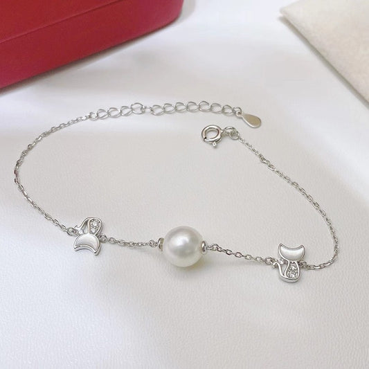 Women Sweet Cat Pearl Bracelet Settings-Feliz Pearl