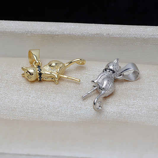 Cubic Zirconia Cat Pearl Pendant Setting-S925 Sterling Silver