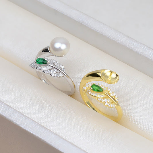 Green CZ Feather Pearl Ring Setting-S925 Sterling Silver