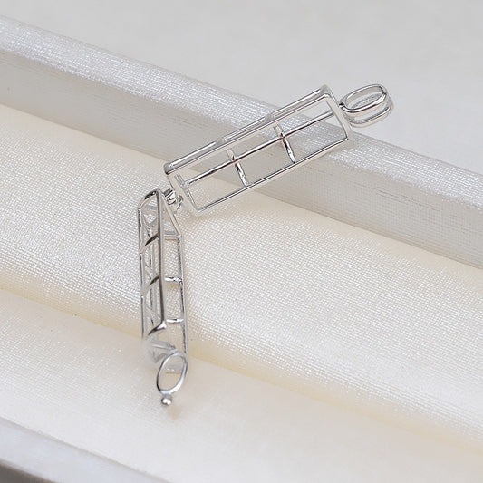 Silver Cylinder Pearl Cage Pendant-Feliz Pearl