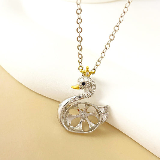S925 Sterling Silver Baby Swan Pearl Pendant Setting