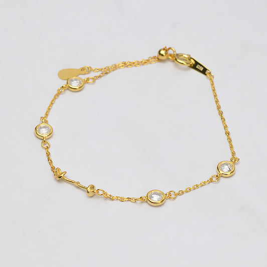 Cubic Zirconia S925 Sterling Silver Pearl Bracelet Setting Double Layer