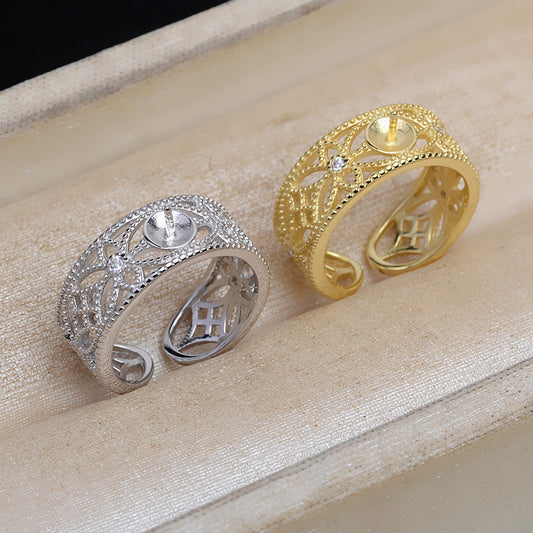Vintage Hollow Wide Band Pearl Ring Setting-Adjustable Size Ring