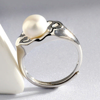 S925 Silver Vintage Irregular Design Wide Band Pearl Ring Setting