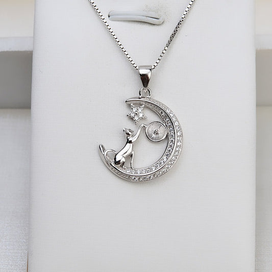 Jewelry DIY Moon&Cat Pearl Pendant Setting