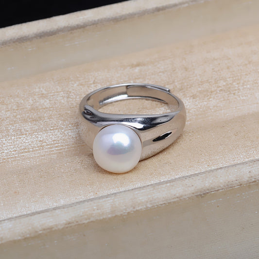 S925 Sterling Silver Vintage Wide Band Button Pearl Ring Setting