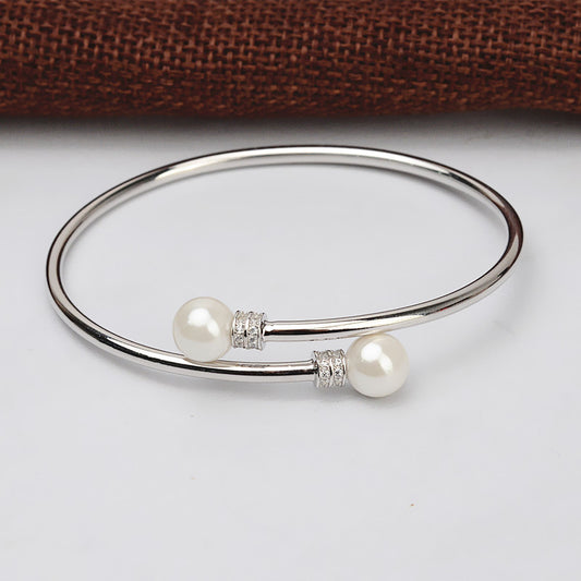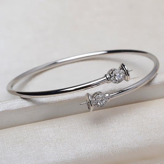 Cubic Zirconia Silver Women Pearl Bangle Setting