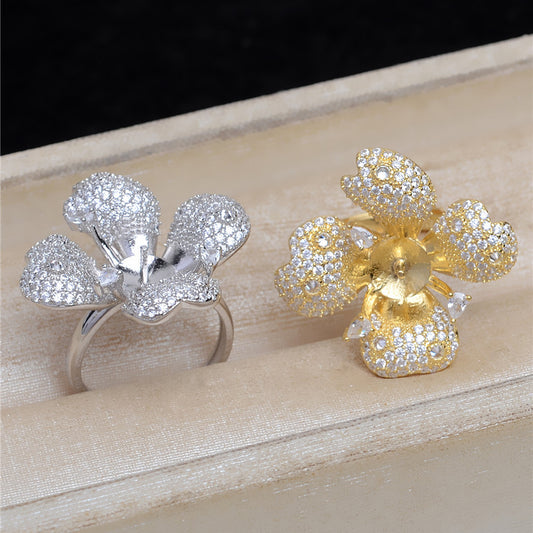 Luxury Silver Cubic Zirconia Flower Pearl Ring Settings