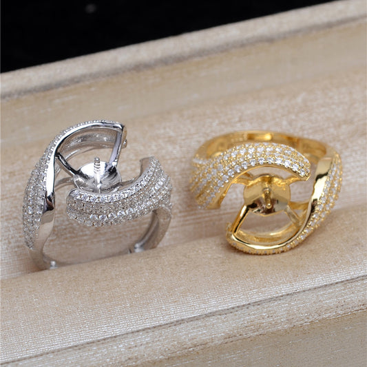 Luxury S925 Silver CZ Pearl Ring Setting-Pearl Jewelry Mountings