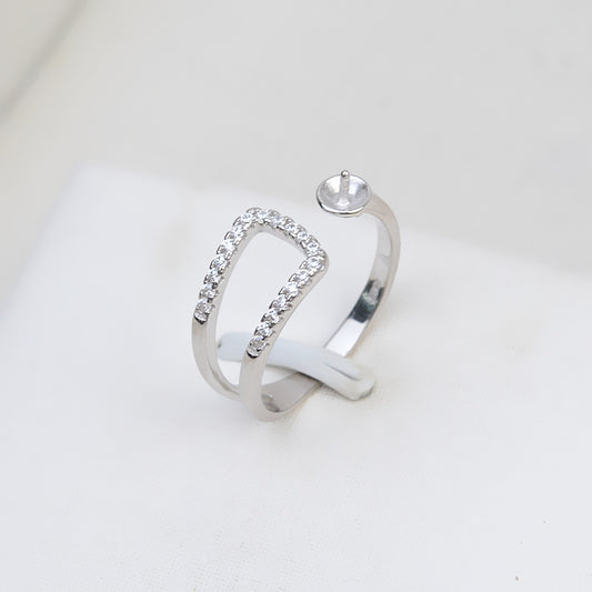 S925 Sterling Silver Cubic Zirconia V Pearl Ring Mounting