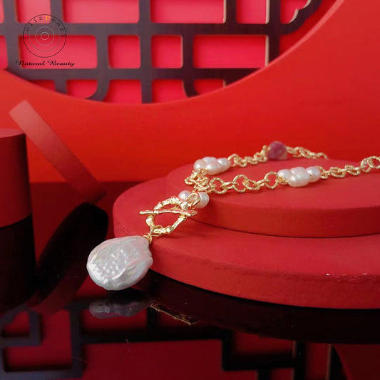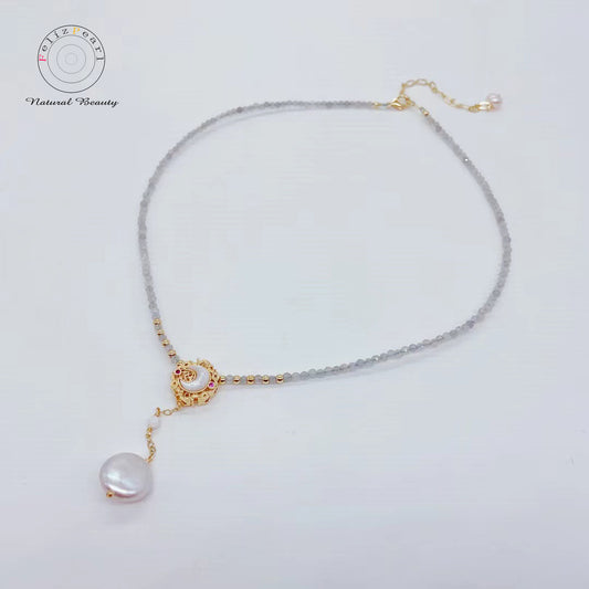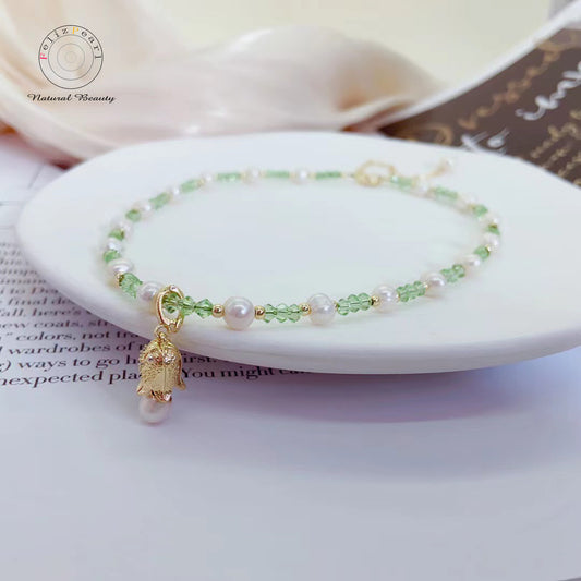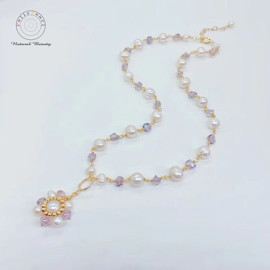 Lovely Bell Orchid Crystal Necklace Freshwater Pearl Jewelry
