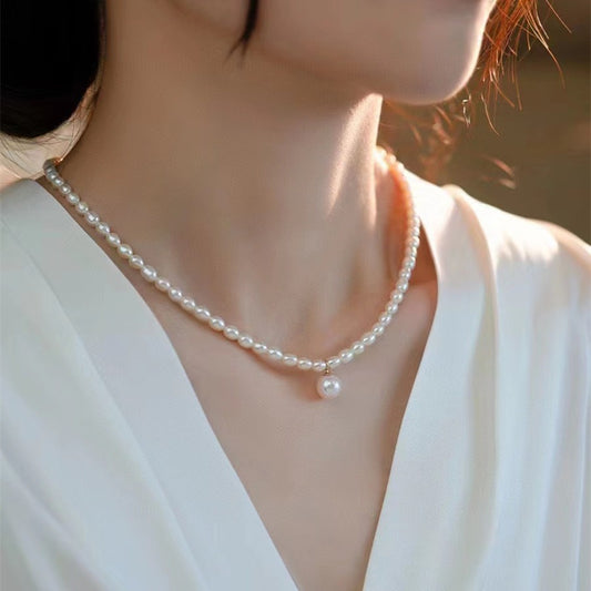 Handmade 5-6mm Chic Freshwater Rice Pearl Necklace