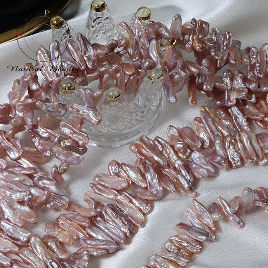Cultured Freshwater Biwa Pearl Strands-5-6mm Natural Purple Color Pearl