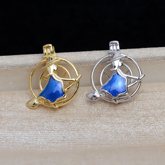 S925 Sterling Silver Halloween Witch Pearl Cage Pendant