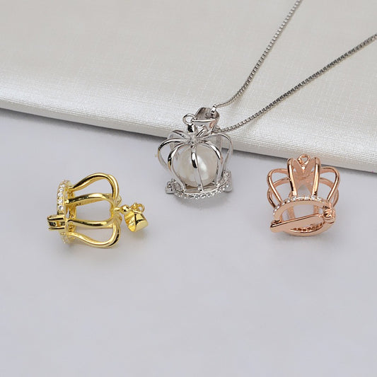 S925 Sterling Silver Cubic Zirconia Crown Pearl Cage Pendant