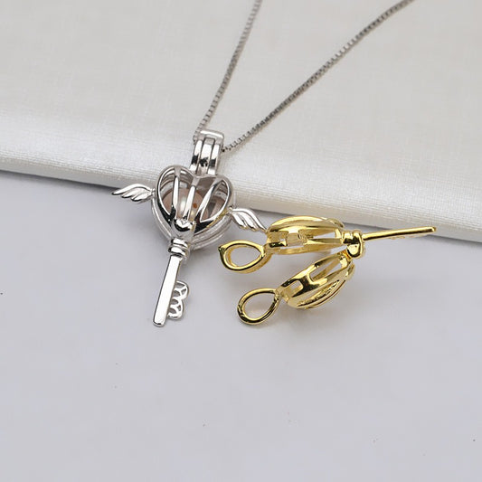 S925 Sterling Silver Angle Key Pearl Cage Pendant