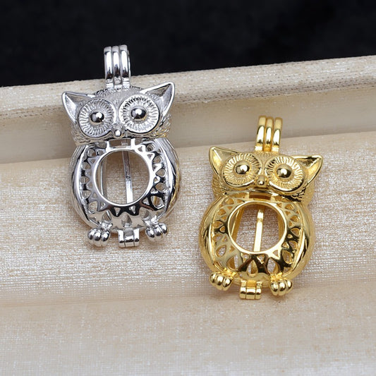 S925 Sterling Silver Owl Pearl Cage Pendant
