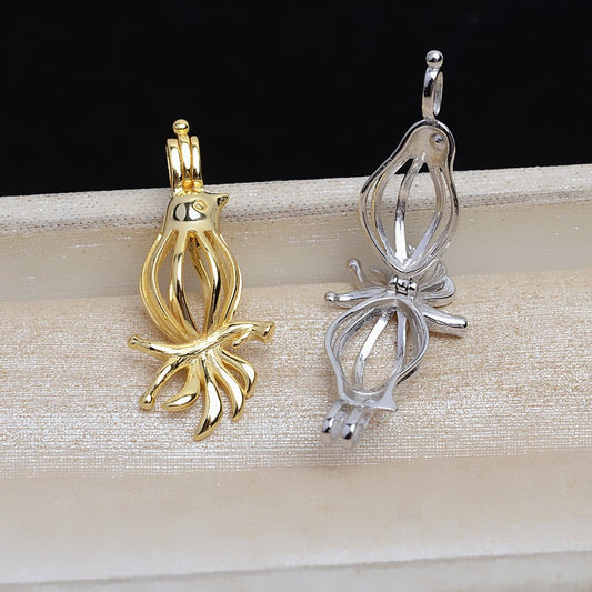 S925 Sterling Silver Bird Pearl Cage Pendant