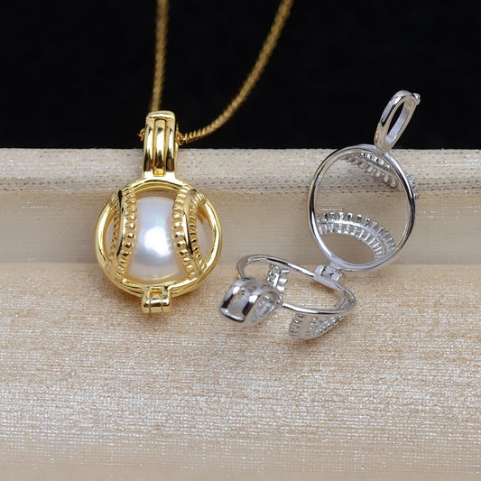 S925 Sterling Silver Tennis Ball Design Pearl Cage Pendant