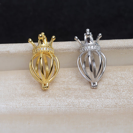 S925 Sterling Silver Crown Balloon Pearl Cage Pendant