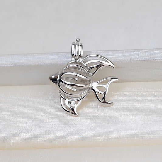 S925 Sterling Silver Goldfish Pearl Cage Pendant