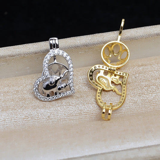 S925 Sterling Silver Heart Elephant Pearl Cage Pendant