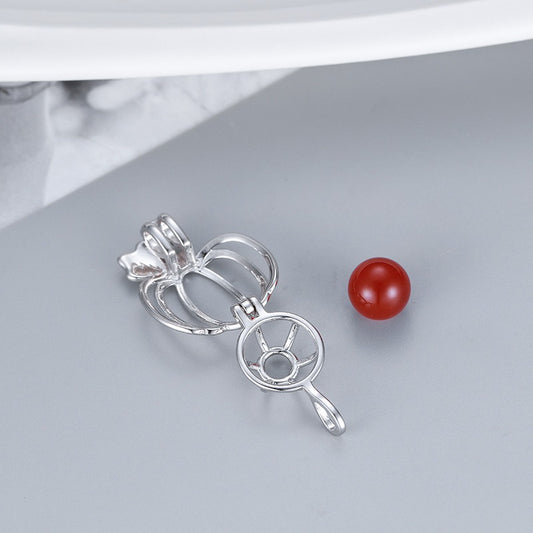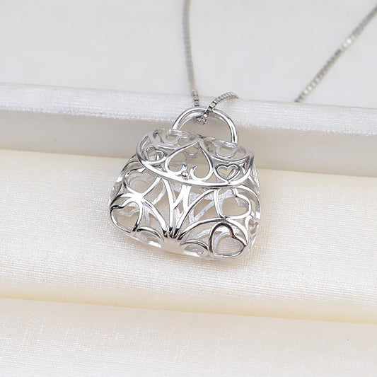 S925 Sterling Silver Women Bag Design Pearl Cage Pendant