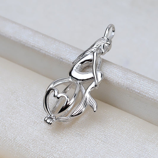S925 Sterling Silver Mermaid Pearl Cage Pendant