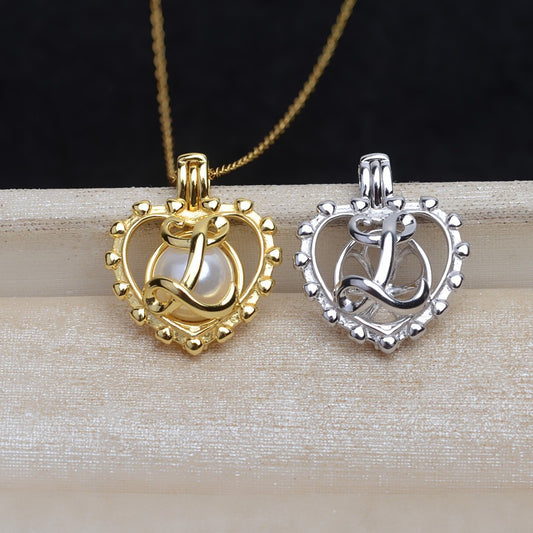 Silver Love Heart Pearl Cage Pendant-Feliz Pearl