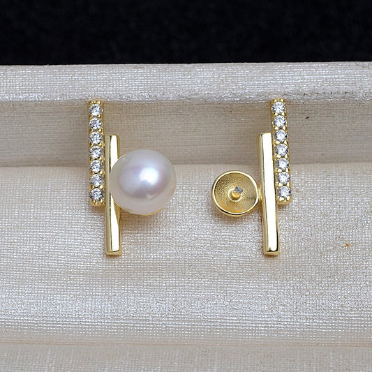 CZ Balance Beam Pearl Stud Earring Settings
