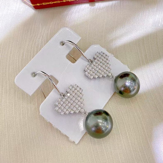Silver Heart Dangle Hook Pearl Earring